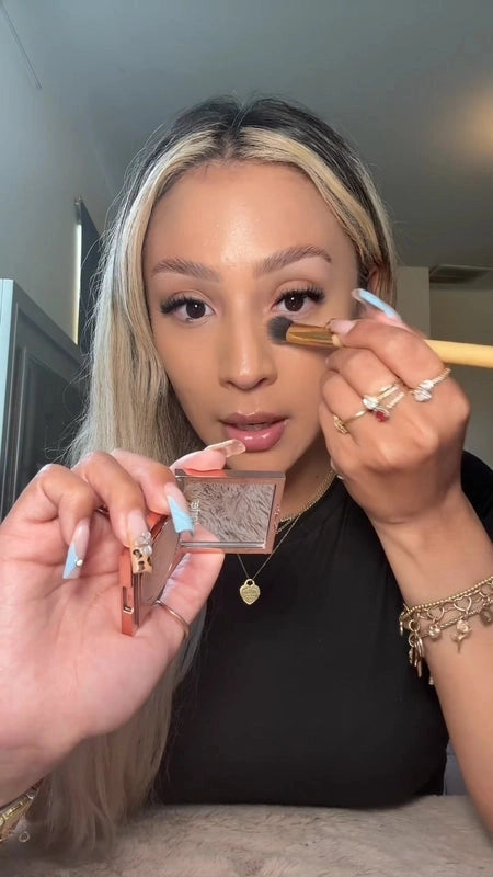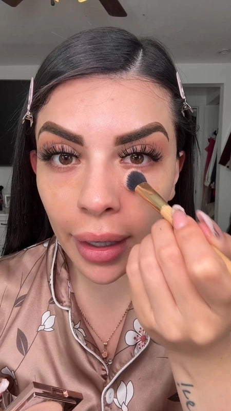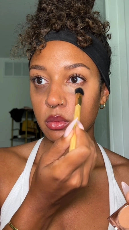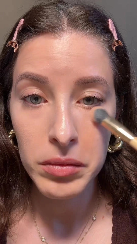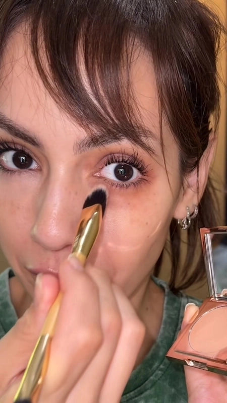 Applica una piccola quantità sotto gli occhi e sfuma delicatamente con le dita o con il pennello incluso.