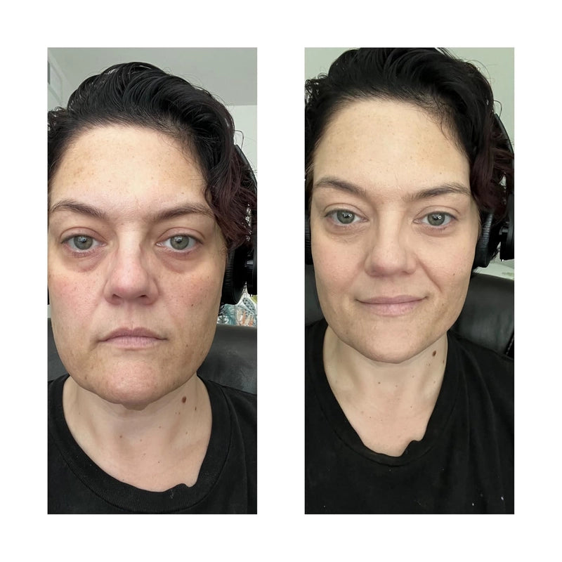 Ho provato questo prodotto in un giorno in cui ero raffreddata: avevo le occhiaie molto più evidenti e il viso gonfio. Ho applicato una piccola quantità con il mio pennello da fondotinta, concentrandomi sul contorno occhi, e poi ho steso il resto sul viso. Questo prodotto è davvero incredibile! Se pensi che sia solo un trend di TikTok, ti assicuro che funziona alla perfezione. Non vedo l’ora di usarlo di nuovo quando mi sentirò meglio e di completare il mio make-up. Inizialmente volevo provarlo per il mio matrimonio, e ora so di aver fatto la scelta giusta.